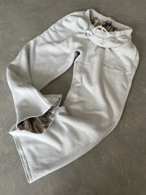 BEIGE/BLACK LOGOS- EMBROIDERED ON GREY SIDE AND SPRAYED ON CAMO SIDE